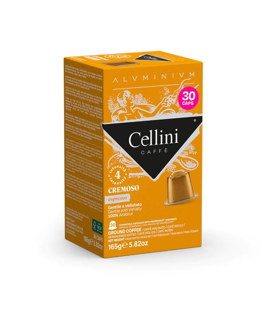 Les capsules unidoses aluminium Cellini sont conditionnées sous atmosphère protectrice en boîtes de 10 capsules. Cela permet une hygiène maximale et un maintien du goût pendant longtemps. Ils sont compatibles avec toutes les machines à café Nespresso et la plupart des machines à capsules Nespresso.